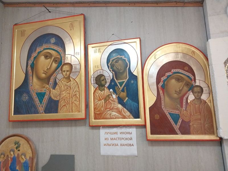 Атна уртасы булуга карамастан, гыйбадәтханәдә кеше бик күп иде. Шунда ук төрле осталык дәресләре узарга: балчыктан сыннар эшләргә яки рәсем ясарга мөмкин. Мин исә Илгиз Хановны эзләп киттем. Икенче катта үзенең остаханәсе бар, рәссам көн саен шунда икән.