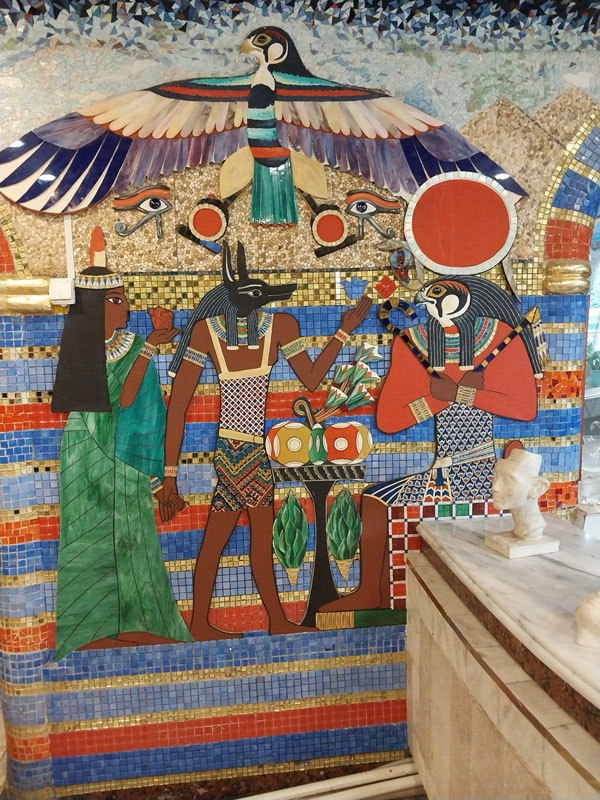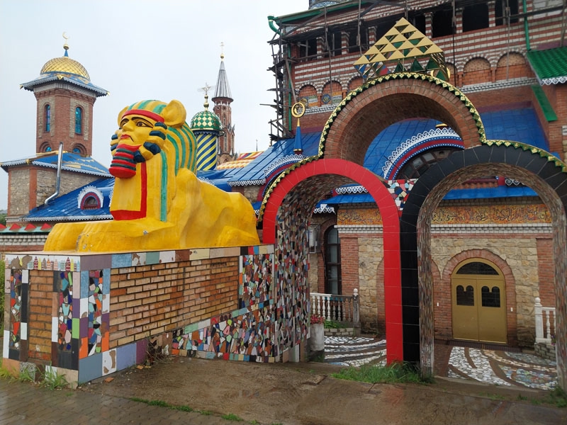 Башта гыйбадәтханә белән танышып чыктым. Кем әйтмешли, шаккатыра! Егермедән артык зал монда. Нигездә, алар аерым бер дингә багышланган. Хәтта борынгы диннәр залына кадәр бар. Зороастризм — кояш культы, Тәңрелек — зәңгәр күк культы, славяннарда — күп аллалык, Чыңгызханның гербы, борынгы руннар, славяннарның Велес белән Хирон аллаларының символлары… Нинди генә сыннар юк. Культурология, диннәр тарихы белән кызыксынган кешеләр өчен бу урын — чын табыш. Хәер, биредә һәр кеше үзе кызыксынган дин тарихы, аның үзенчәлекләре белән якыннанрак таныша ала. Мәсәлән, миңа буддистлар һәм Мисыр залы ошады. Бизәлеш, төсләр төрлелеге буенча таң калдырды. Әлбәттә, иң җылы тоелганы ислам залы булды. Дөрес, әлегә ул әллә ни зур түгел. Баксаң, Илгиз Ханов татар культурасына, ислам дөньясына багышлап, аерым зал ясый. Һәм ул башка залларга караганда күпкә затлырак та, зуррак та булачак.